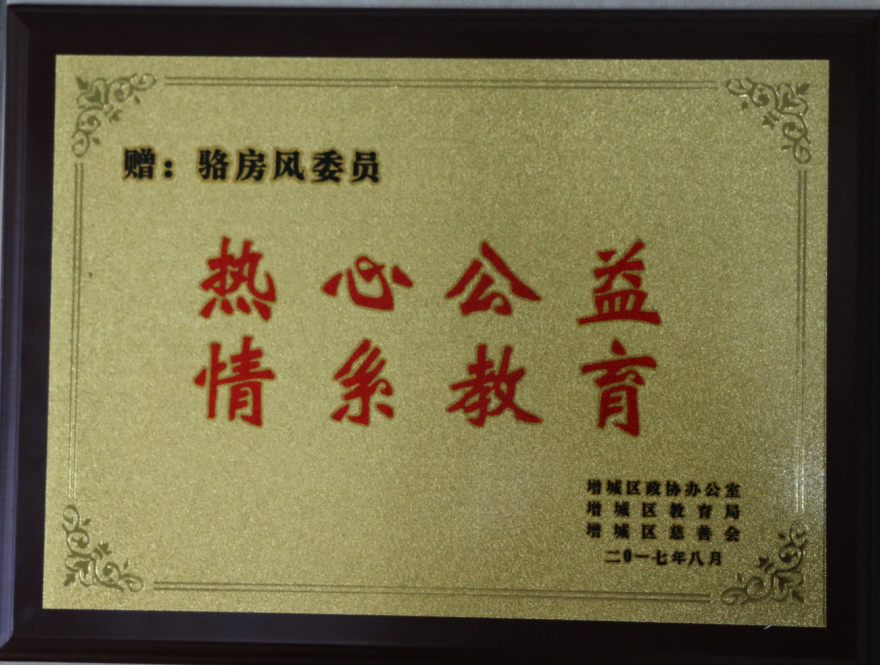 8月29日下午,2017年度增城區(qū)大學(xué)生助學(xué)金發(fā)放暨政協(xié)委員扶困助學(xué)表彰儀式在區(qū)委1號樓隆重舉行。區(qū)政協(xié)委員、公司董事長駱房風(fēng)先生熱心社會公益事業(yè),情系教育、扶困助學(xué),在本次會議上獲得表彰。